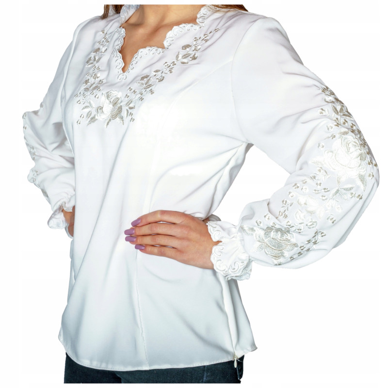 Góralska koszula damska z haftem biała – elegancja z duszą folkloru