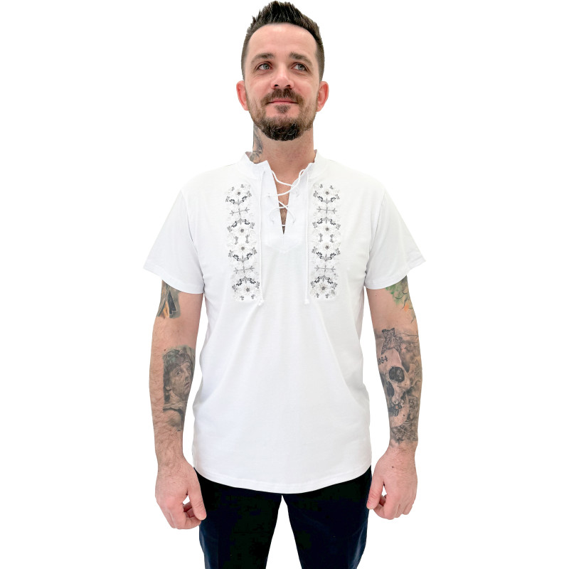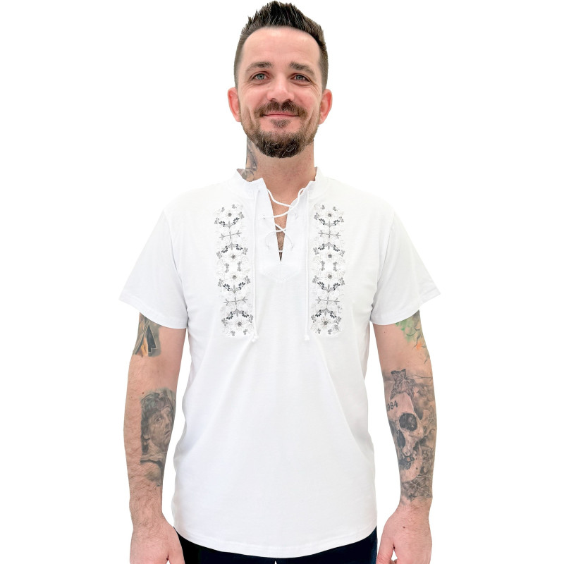 Koszulka biała góralska haftowana szarotki folkowa męska- 06