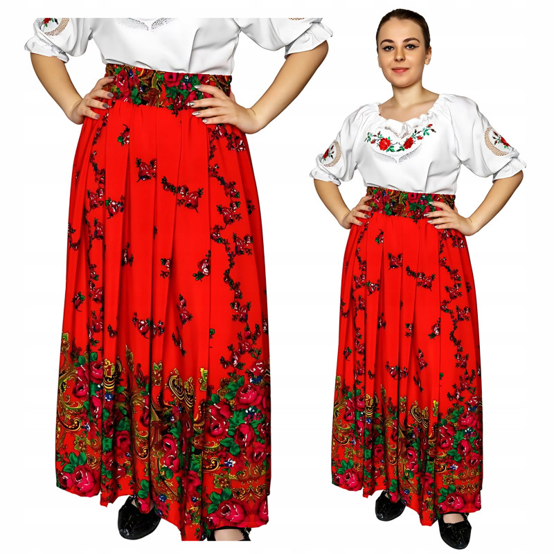 -Długa góralska spódnica ma piękny kwiatowy wzór na całej powierzchni, który sprawi, że będziesz wyglądać i czuć się świetnie,
