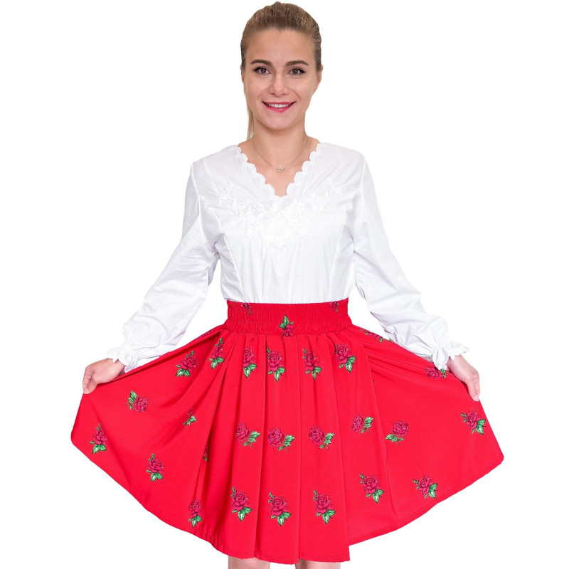 -Krótka góralska spódnica ma piękny kwiatowy wzór na całej powierzchni, który sprawi, że będziesz wyglądać i czuć się świetnie,