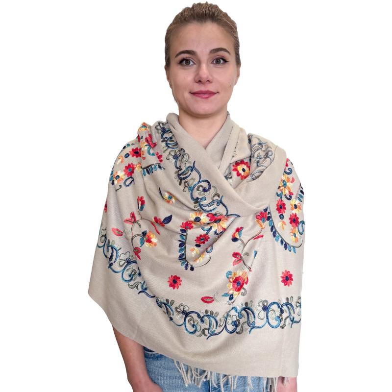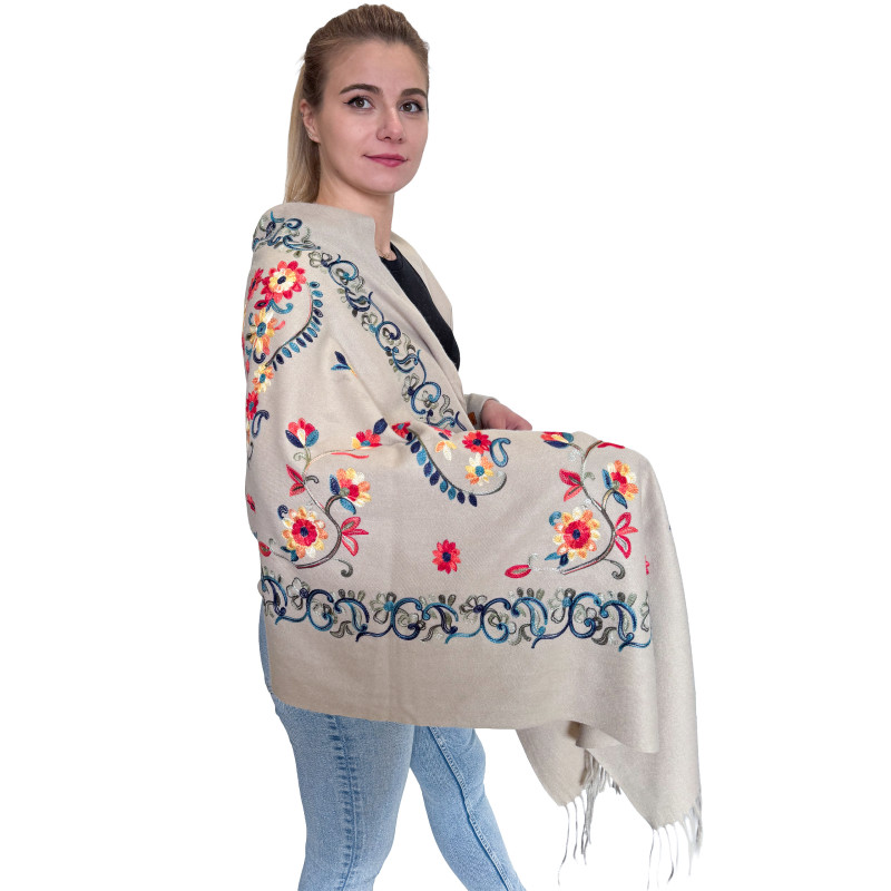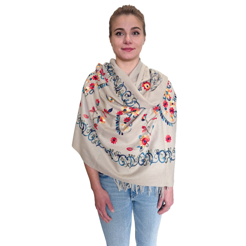 Miękki i przyjemny w dotyku szal wykonany z wysokiej jakości mieszanki kaszmiru. Materiał jest delikatny dla skóry, lekki, a jednocześnie zapewnia doskonałe ciepło. Gładka, elegancka faktura sprawia, że szal świetnie sprawdzi się zarówno na co dzień, jak i jako stylowy dodatek do bardziej eleganckich stylizacji.