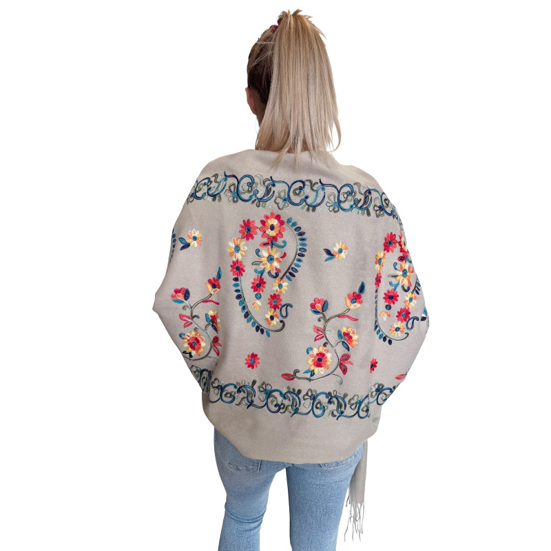Duży rozmiar (200 × 70 cm) pozwala na różne sposoby noszenia — jako szal, chustę lub narzutkę.