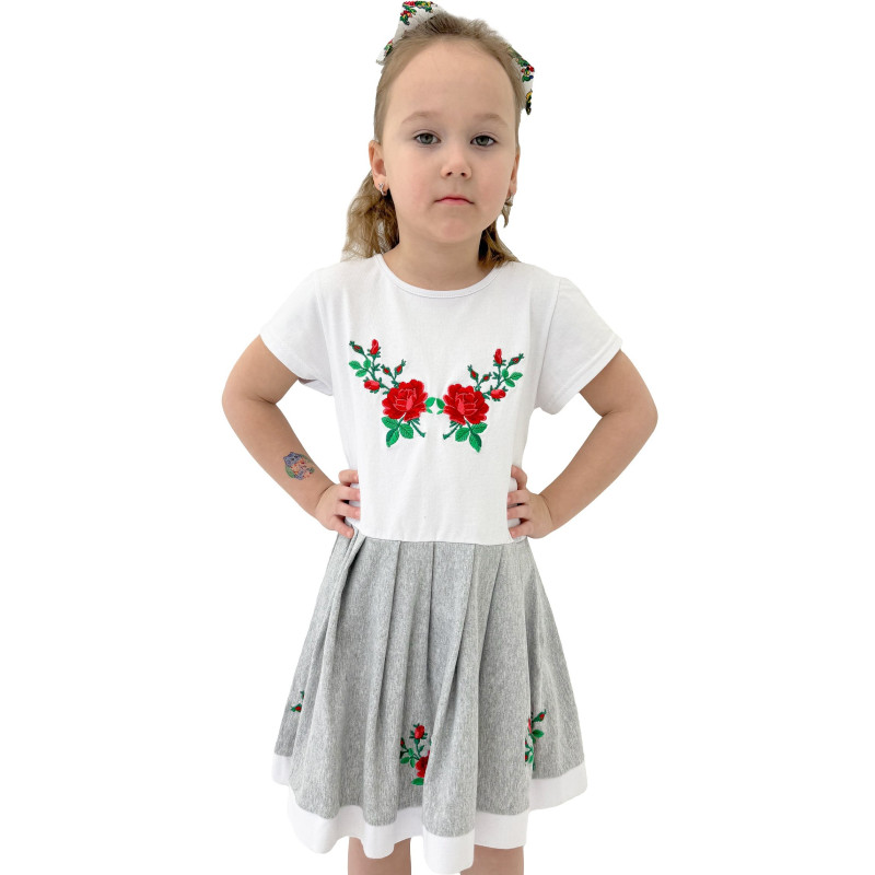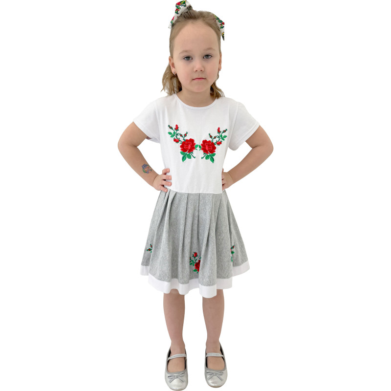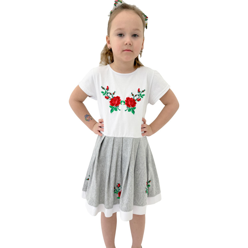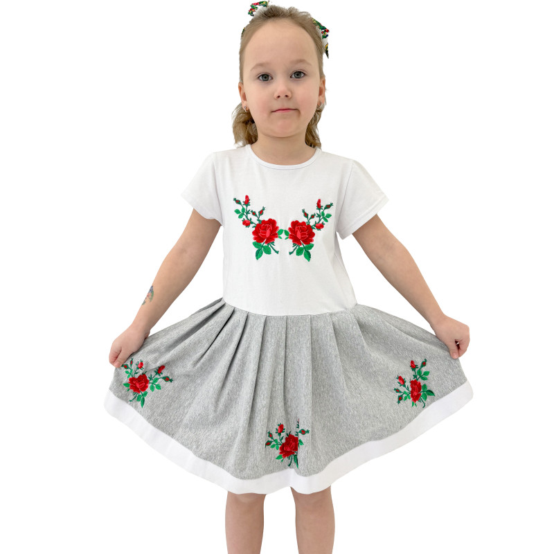 Sukienka z krótkim rękawem i haftem w regionalnym stylu. Sukienka na podszewce z rozkloszowanym dołem w kolorowe kwiaty.